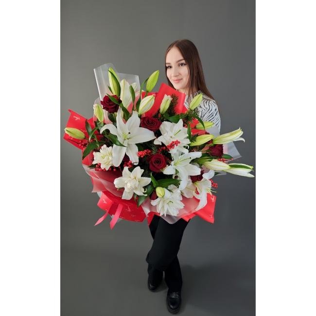 Описание Лилия — это благородный цветок, который всегда вызывает яркие чувства и является прекрасным жестом выражения признательности кому-то особенному в нашей жизни. Цветок обладает универсальным символизмом, станет подходящим подарком для любого торжества.