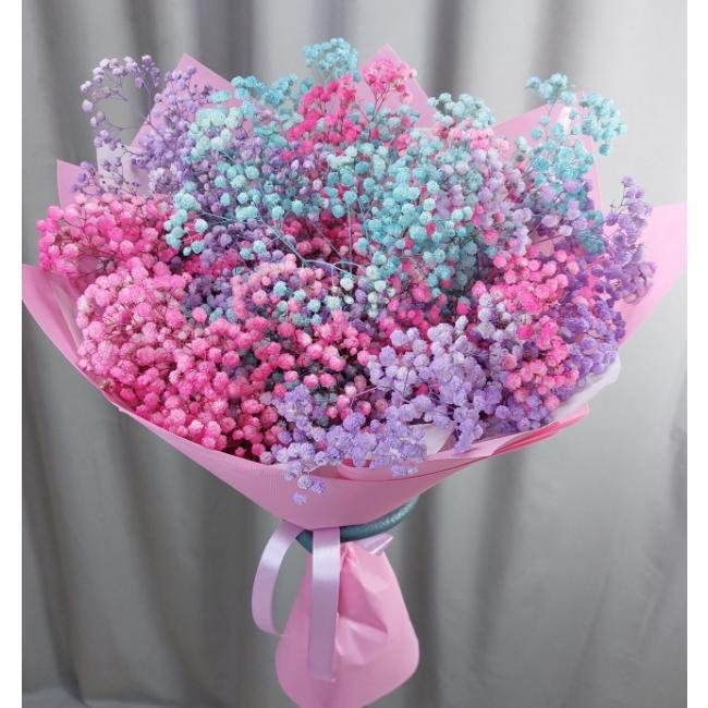 Описание Гипсофила множества мелких цветочков, очень стойкие, дальше можно оставить как сухоцветы. Яркие насыщенные цвета.